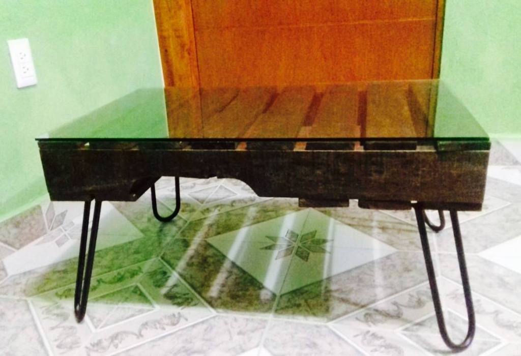 Mesa hecha con un palet reutilizable