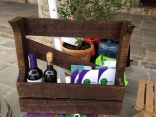 Porta vinos hecho un con palet reutilizable